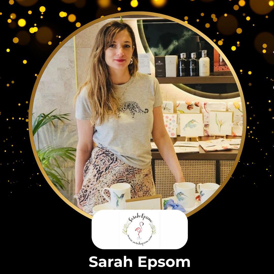 Winner of the EVAS2025 Creative Industry Award, Sarah is the founder of Sarah Epsom. A UK brand inspired by nature’s beauty, creating unique, sustainable homeware and cards from original watercolour art. Sarah Epsom’s intricate designs capture nature’s simplicity, evoking wonder.