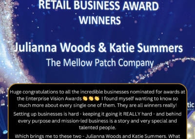 Which brings me to these two – Julianna Woods and Katie Summers. What they’ve achieved with The Mellowpatch Company in just 2 years is incredible and they were well deserved winners of the Retail Business Award this year.